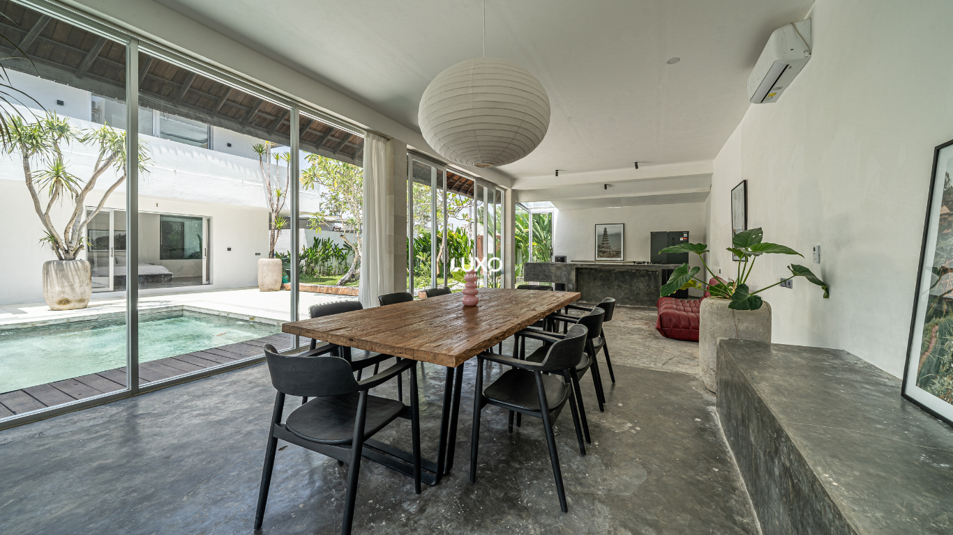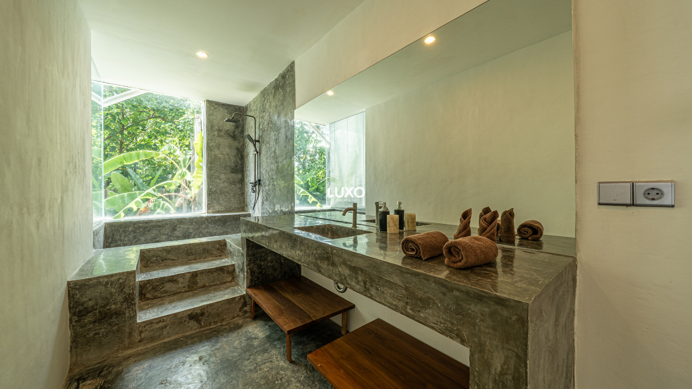 A striking expression of minimalist architecture, this brutalist-inspired 4-bedroom villa in the sought-after Pererenan Beach offers a bold yet refined living experience just moments from the ocean. Set on 600 sqm of land and approximately 100 meters from the shoreline, the residence is defined by its strong architectural lines, raw textures of stone and concrete, and a clean minimalist aesthetic that creates a timeless and sophisticated atmosphere.