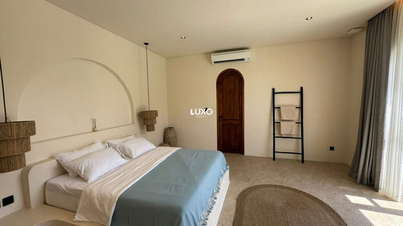The villa features a bright open-plan living and kitchen area that connects seamlessly to the outdoor space, creating a comfortable and airy atmosphere. The spacious bedroom comes with an ensuite bathroom, providing both comfort and privacy. Designed with a Mediterranean-inspired concept, the villa highlights warm tones, natural textures, and a relaxed ambiance that perfectly complements Bali’s coastal lifestyle.