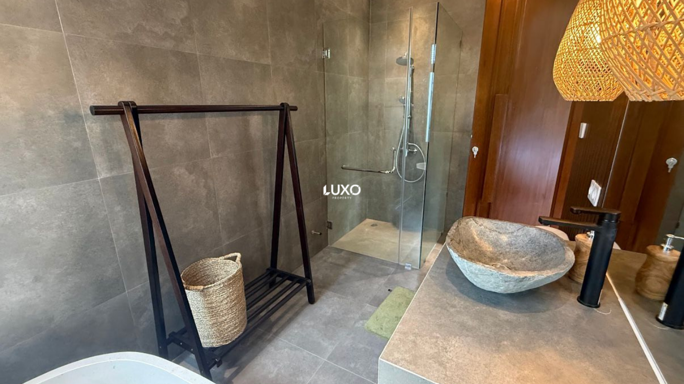 Set on 130 m² of land with a 85 m² building size, the villa features a closed living room, two bedrooms with ensuite bathrooms, and a private 17 m² swimming pool. The property sits within a secure complex of 18 villas, equipped with CCTV and parking space for cars and motorbikes.